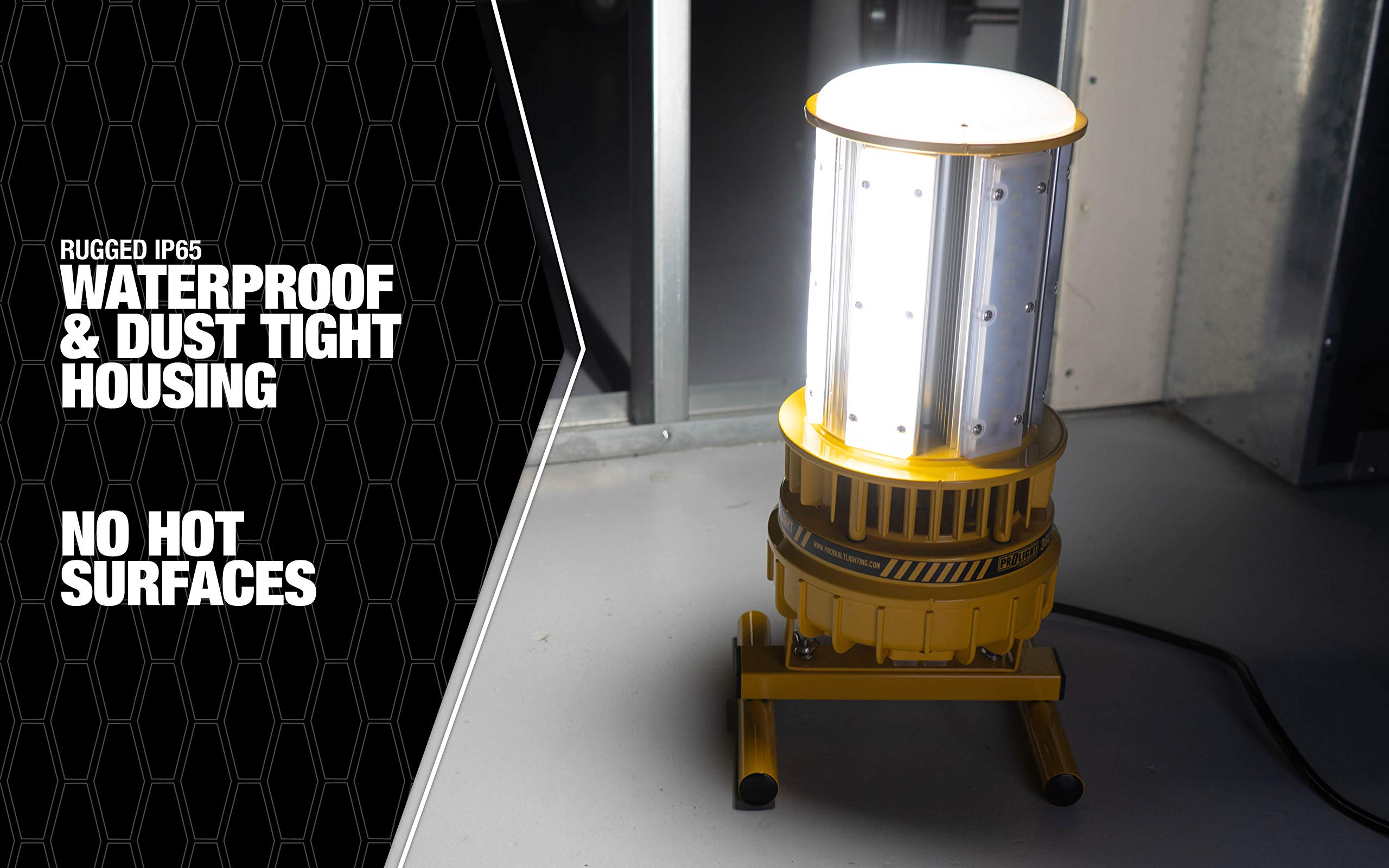 Prolight 111508 360° Industrial LED Work Light Kit, Includes Floor Stand, Tripod Mount, Hook and Two Earth Magnets, 15,000 Lumens, 120 Watts, One Size, Yellow