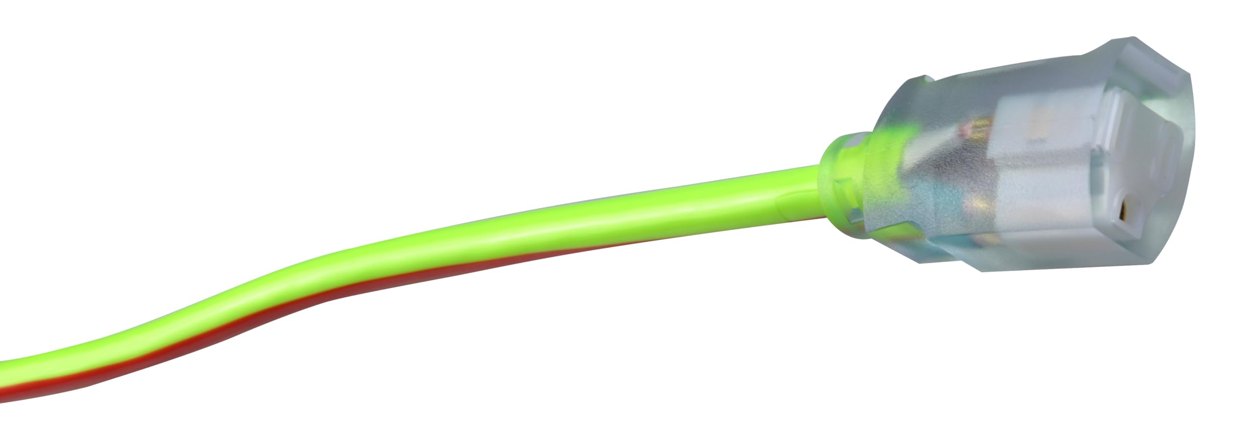 Southwire Heavy Duty Extension Cord, 100Ft, 12 Gauge, 3 Conductor, Neon Outdoor Cord, Lighted End, SJTW, Lime Green/Red, 2549SW0054