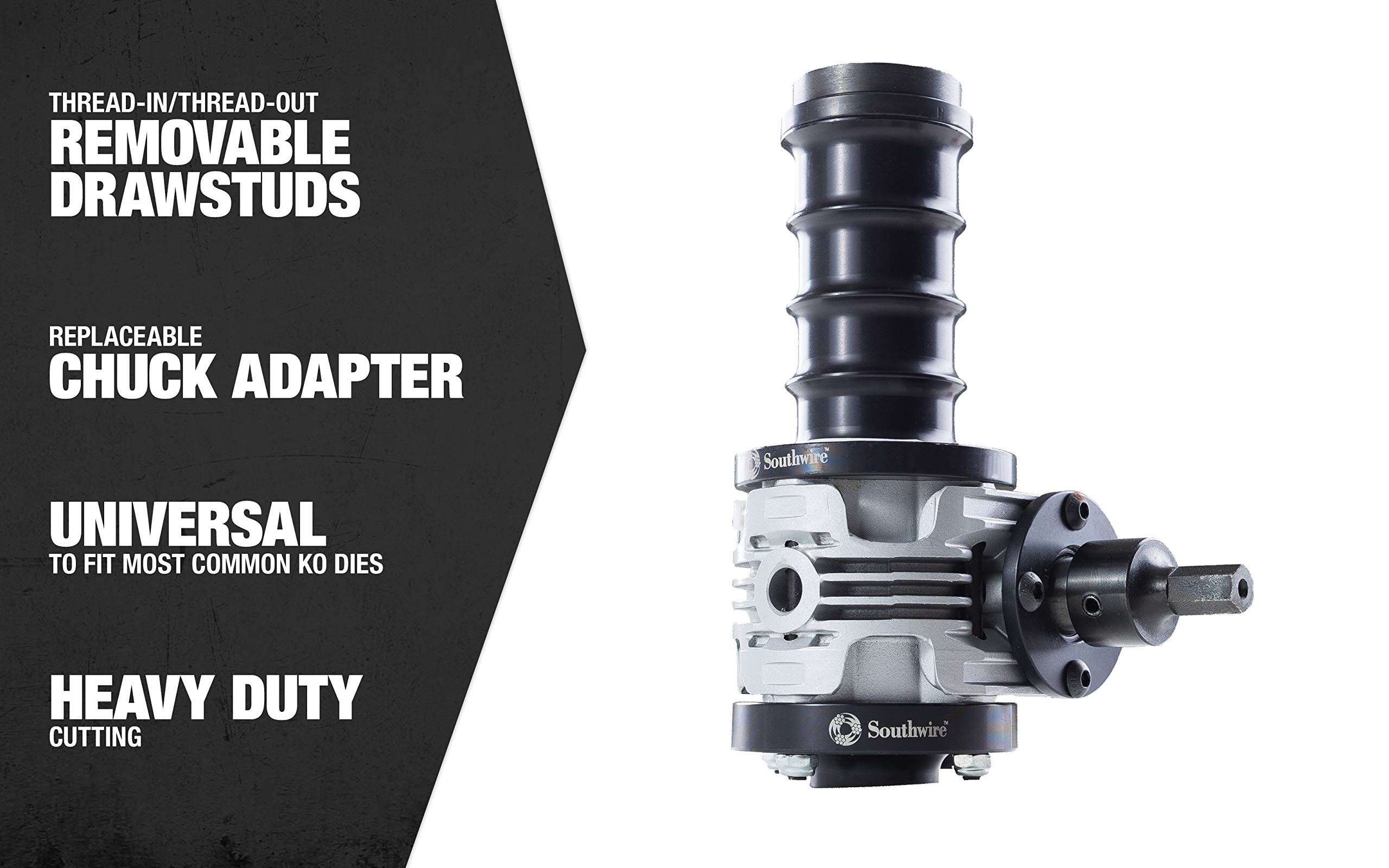 Southwire Knockout Punch Driver Kit - Fast, Accurate Hole Cuts with Cordless Drill - Removable Draw Studs - No Hydraulics - Compact Aluminum Design - 1/2-Inch to 2-Inch Set with Drive Unit