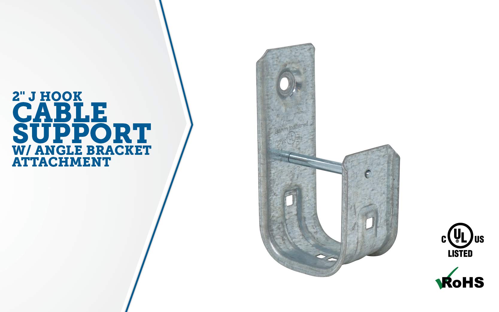 Southwire SW-JHK-32-AB 2" Support J-Hook with Angle Bracket Attachment, Holds 80 CAT 5E Cables, Zinc Plated Steel Ceiling Mount, 50 Pack, 2 Inch, Silver